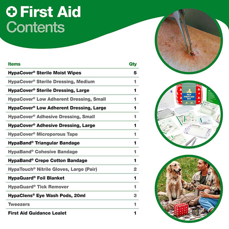 • Easily recognisable – Bold red case with white decals makes it instantly recognisable as a pet first aid kit.